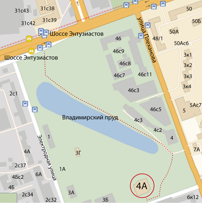 Проезд до станции метро «Шоссе энтузиастов», далее через парк мимо пруда и направо к высокому офисному зданию, вход со стороны Электродного проезда.