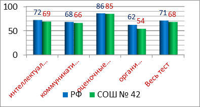 Сравнительная характеристика показателей тестирования учащихся МБОУ СОШ № 42 с общероссийскими показывают незначительную разницу в показателях.