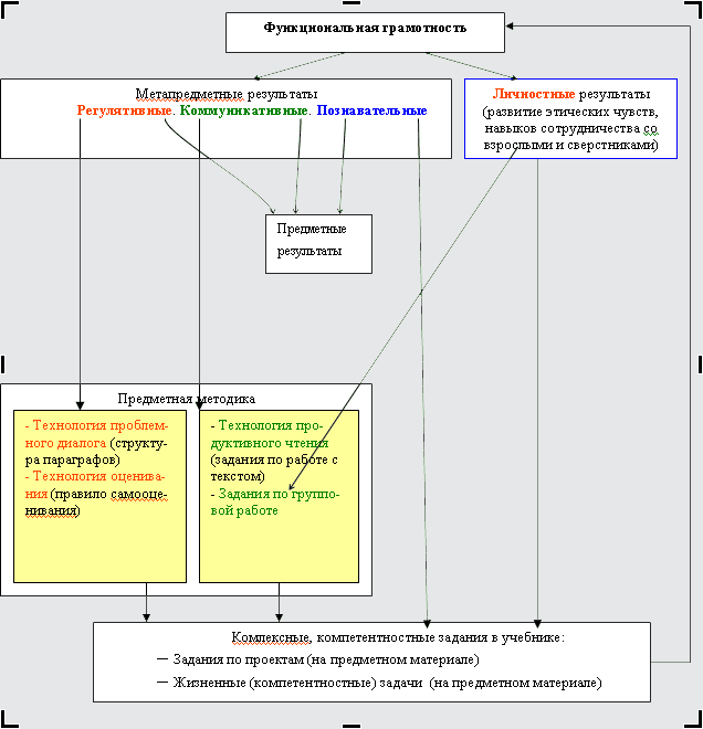 Все результаты (цели) освоения учебно-методического курса образуют целостную систему вместе с предметными средствами. Их взаимосвязь можно увидеть на схеме.